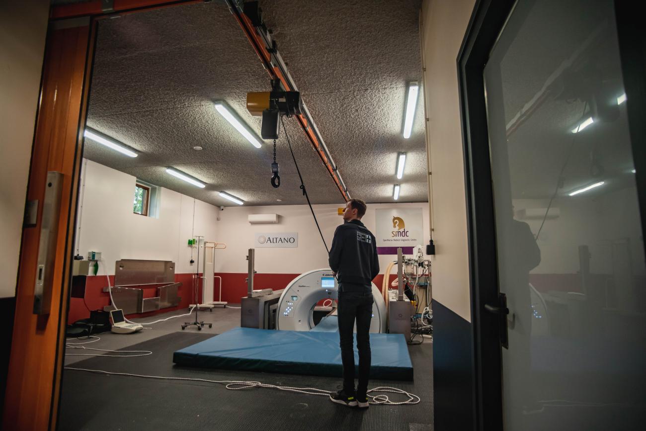 This simple installation is a perfect example of the variety of applications that our systems can handle. Here the clinic wanted a simple hoist system to transport horses and sporthorses weighing 500-700kgs under anaesthesia to the CT scanner in order to make 3D CT Scans easier and more comfortable to do - for both the animal and the staff.